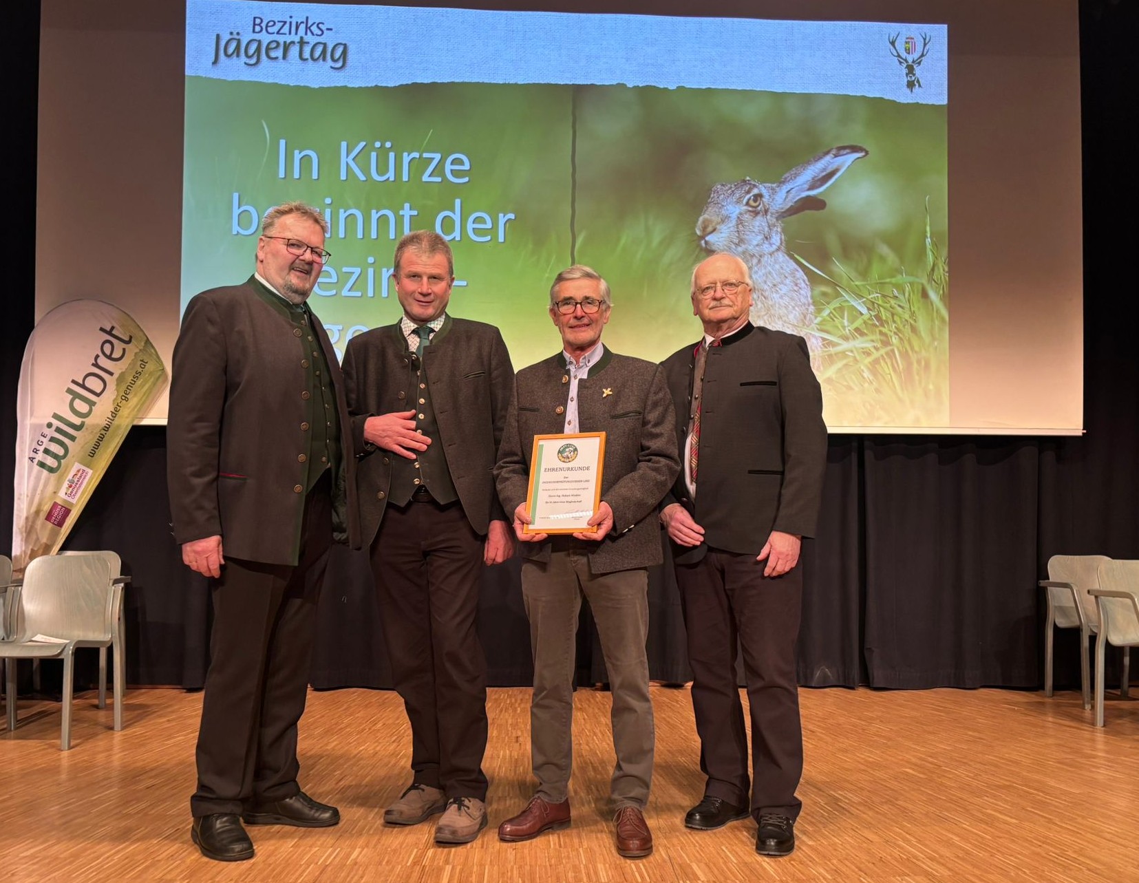 Die Ehrung wurde von Bezirksjägermeister Christian Pfistermüller sowie unseren Vorstandsmitgliedern Mf. Josef Lanzersdorfer und Manfred Sturmberger überreicht.